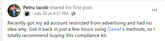 Having any ad account banned was a sucker punch for sure. I felt the pain. I spent 2 hours trying to chase support on chat, figuring out what I did wrong. So many questions going through my mind.